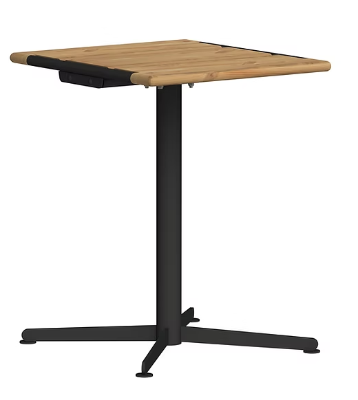 Trygge, tunge og tøffe møbler, perfekt til uteservering, torget, borettslaget eller bakgården. Det hevede kryssunderstellet i stål på stolene gir både tyngde til, men også et unikt preg på møblene.