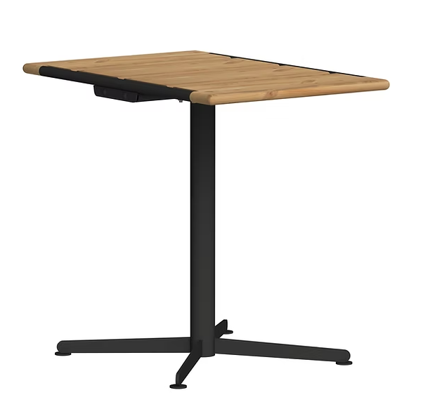 Trygge, tunge og tøffe møbler, perfekt til uteservering, torget, borettslaget eller bakgården. Det hevede kryssunderstellet i stål på stolene gir både tyngde til, men også et unikt preg på møblene.