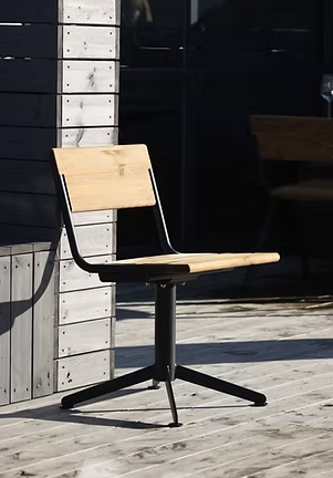 Trygge, tunge og tøffe møbler, perfekt til uteservering, torget, borettslaget eller bakgården. Det hevede kryssunderstellet i stål på stolene gir både tyngde til, men også et unikt preg på møblene.