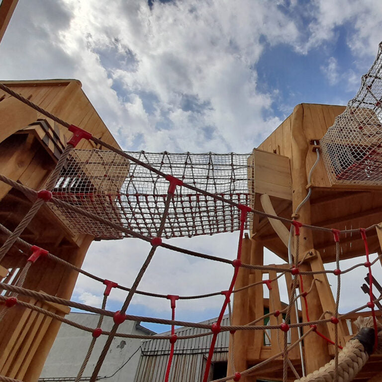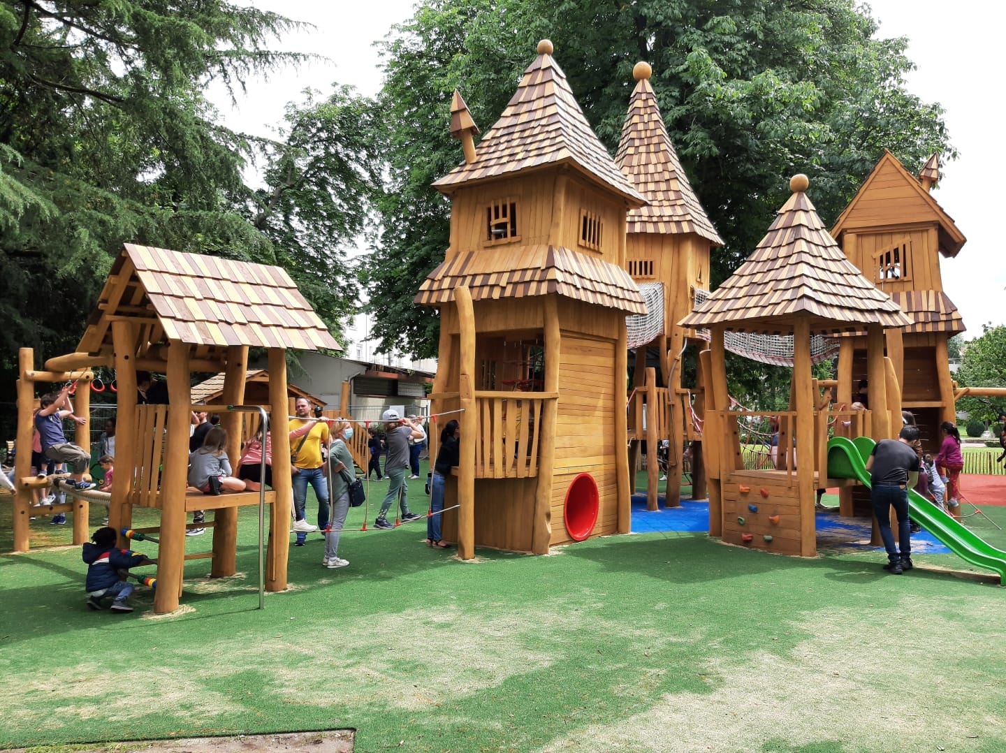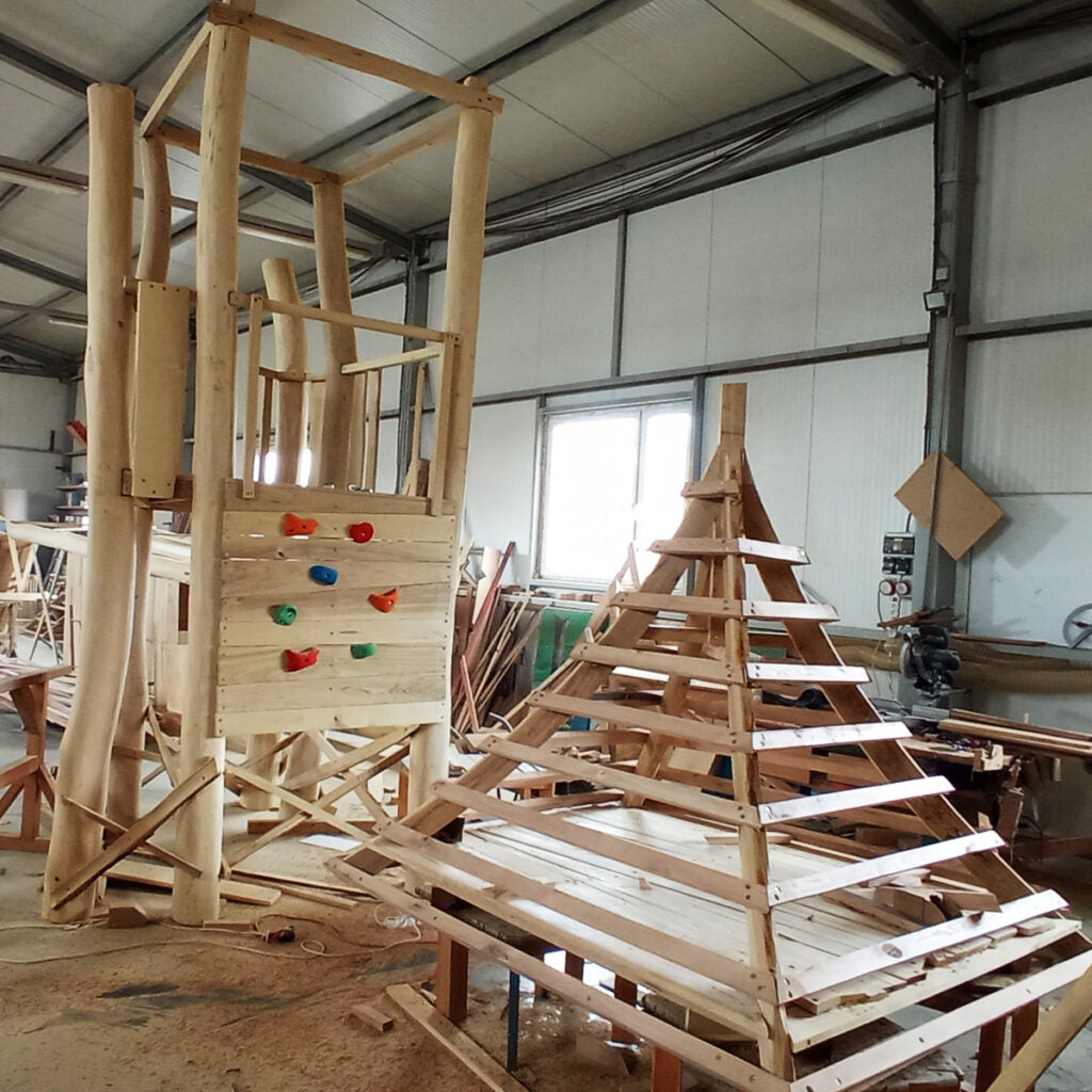 Kombinasjonen av heltre akasie, limte elementer og kunstnerisk kreativitet skapte lekeobjekter som ser ut som bakgrunner fra et filmstudio – men som likevel oppfyller alle sikkerhets- og tekniske krav for permanent utendørs bruk.