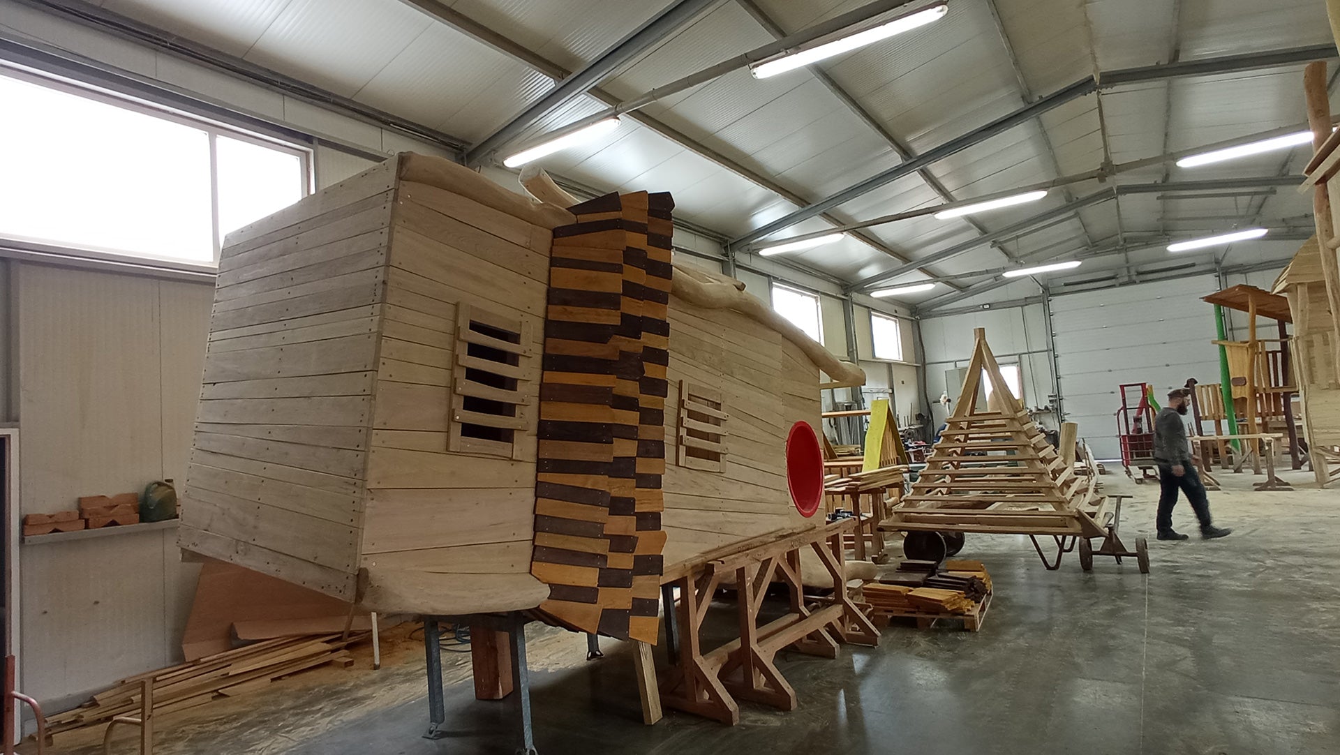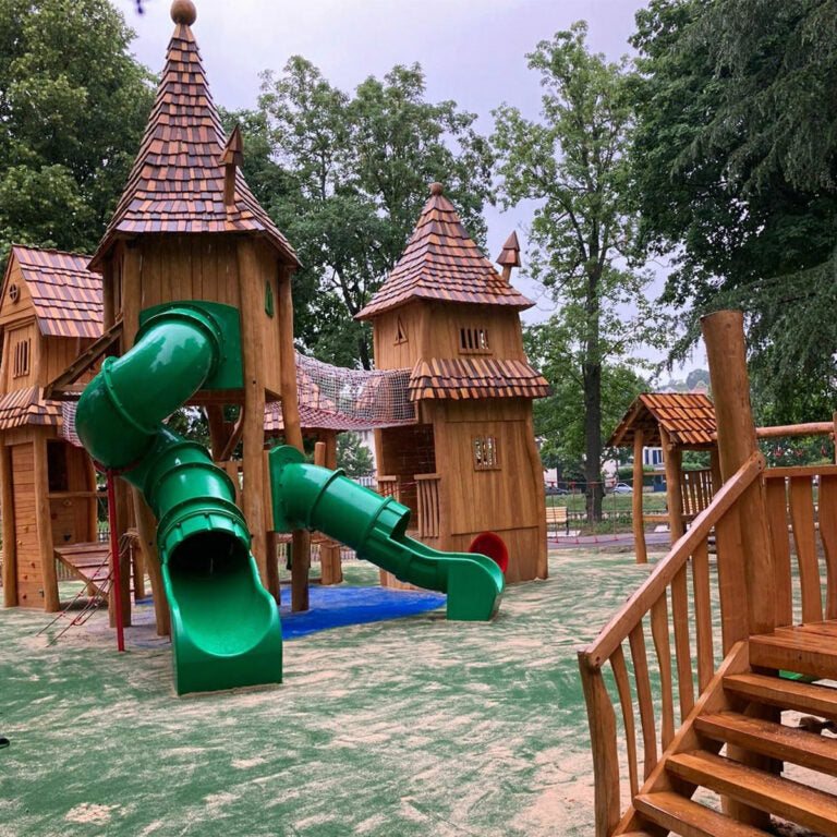 Hele prosjektet er et bevis på at selv en lekeplass kan være et kunstverk. Tårnene, takene og fasadene er håndskåret, frest og formet, noe som gir dem utseendet av håndlaget arbeid som ingen maskin kan erstatte. Hvert element ble laget i verkstedet vårt, med vekt på detaljer, tekstur, trestruktur og håndverksmessige skjøter.