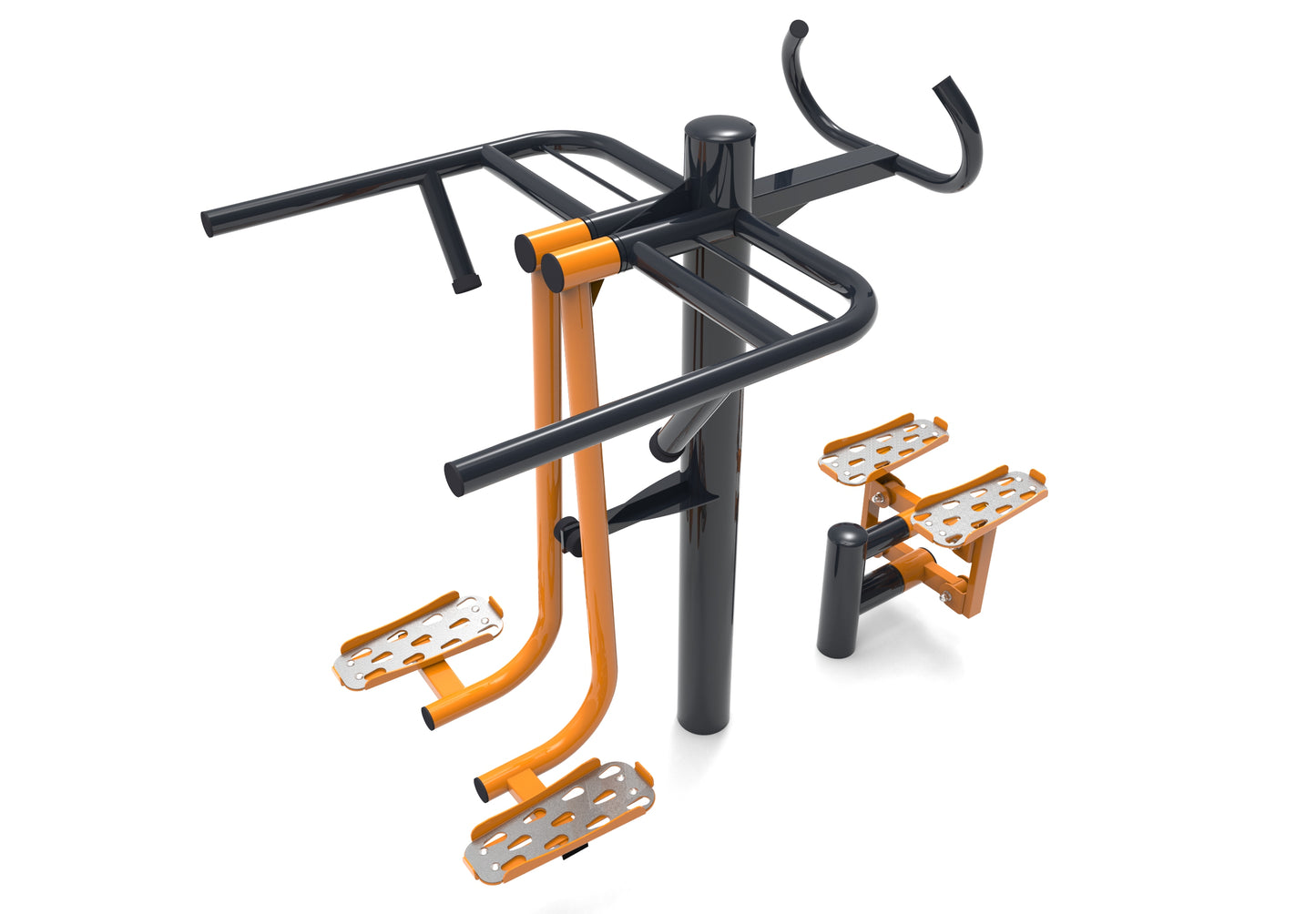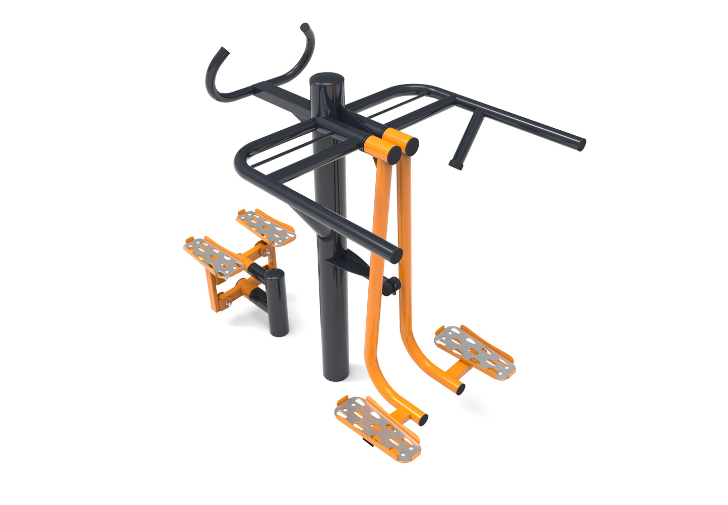 Fitness Standard Svingbar + Stepper er en kombinasjon av to produkter i samme serie. Når man kombinerer to produkter, så får man plass til mer trening på en liten plass. Dette er et utendørs treningsapparat.