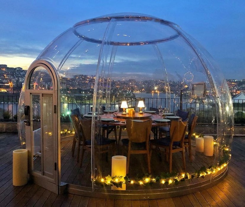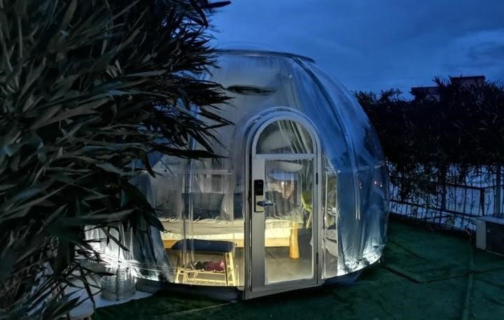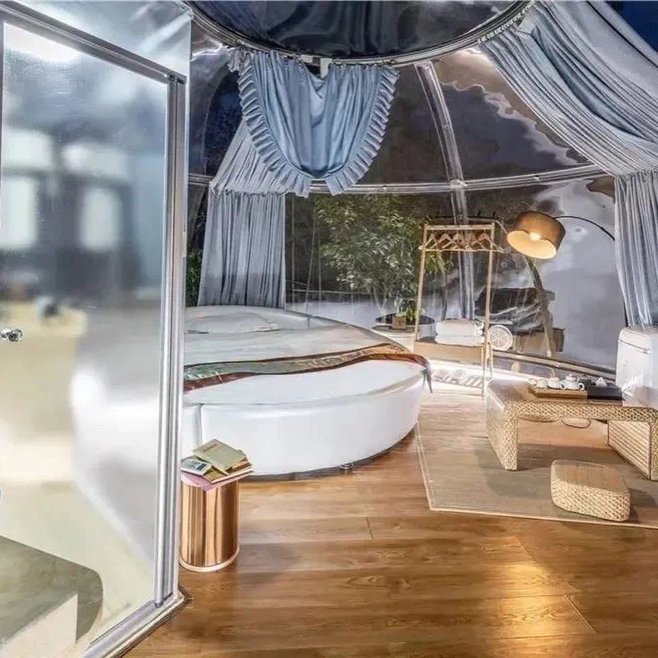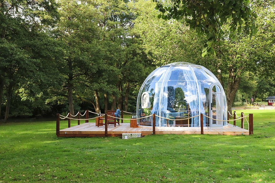 Glass Domen / hytta er 4,5 m i diameter