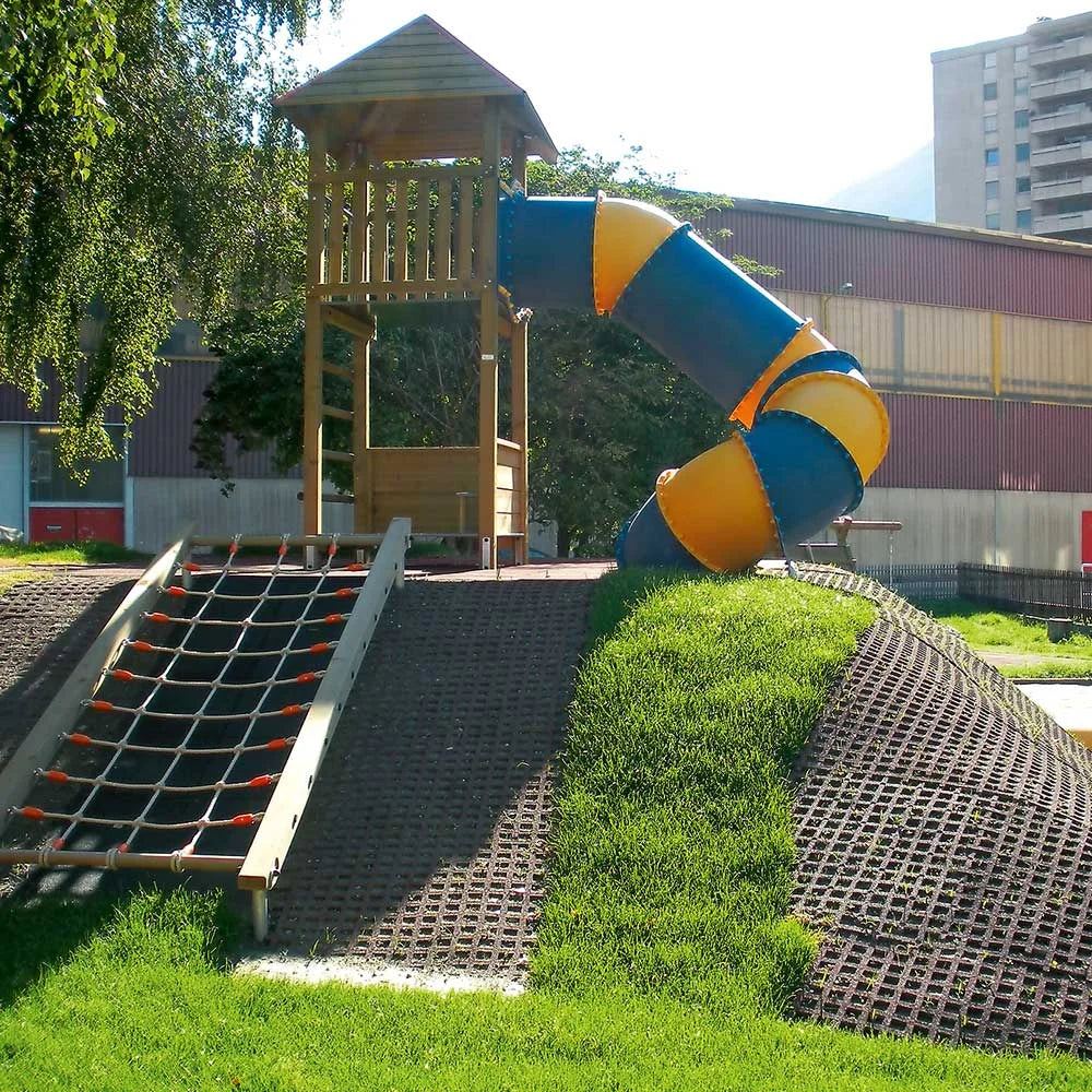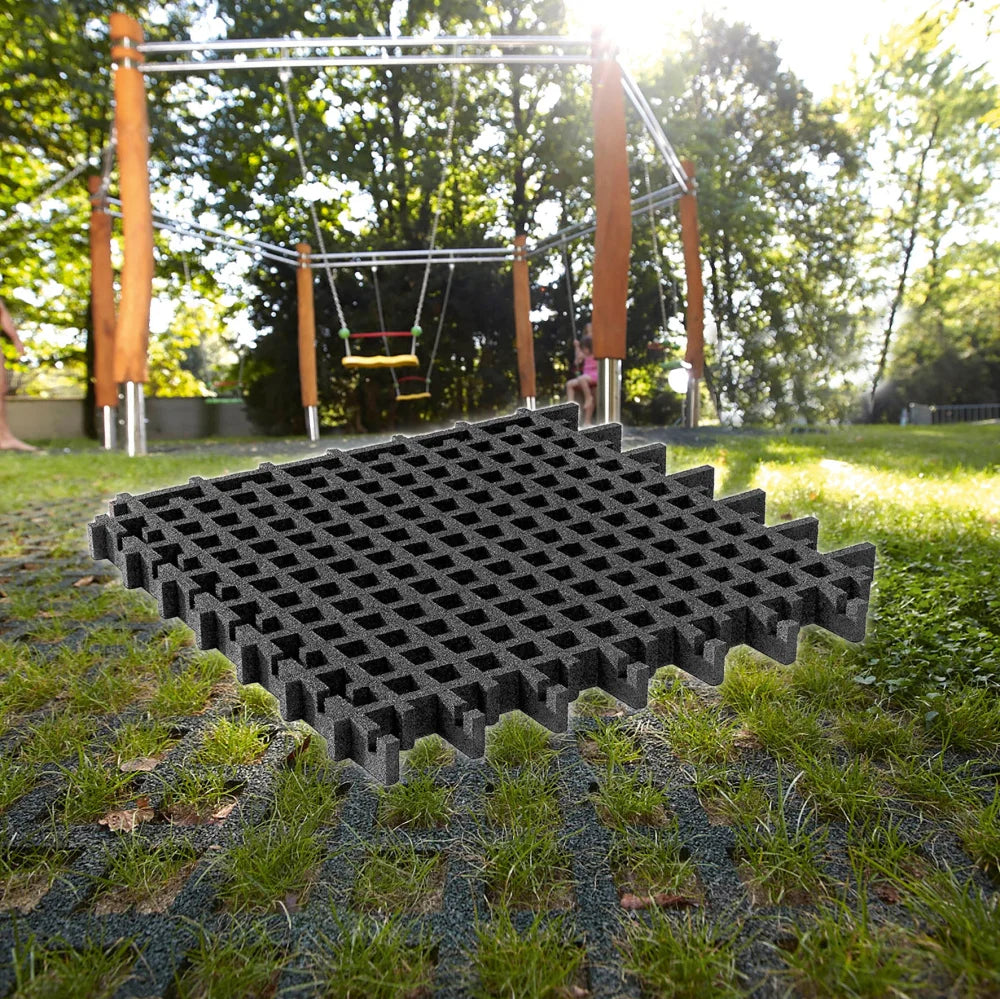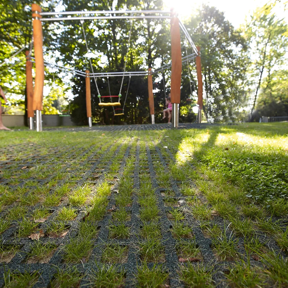 Gressgitteret fungerer perfekt for å forsterke jord og gress. Når gresset vokser, beskyttes røttene, og opprettholder dermed et grønt utseende. Samtidig sørger gummien for en sklisikker og myk overflate.