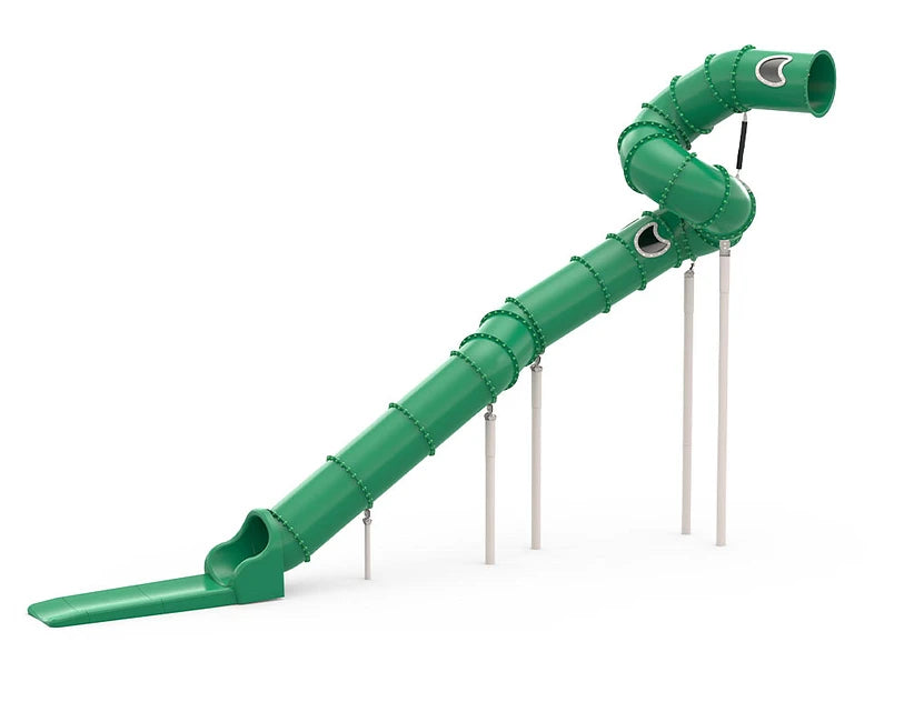 Avhengig av hvor fort barna går gjennom tunnelen, kan det også være nødvendig å legge til vårt forlengelsesuttak. For sklier med mye fart er dette et krav, da utløpsstykket fungerer som en fartsdemper og gir barna en komfortabel og trygg avslutning på sklieturen. I noen tilfeller vil vi også anbefale en sperreplate eller et klatrevernskilt, da tunneler med kombinert design ofte er høye, og vi ønsker derfor å forhindre at nysgjerrige barn begynner å klatre opp på utsiden av røret.